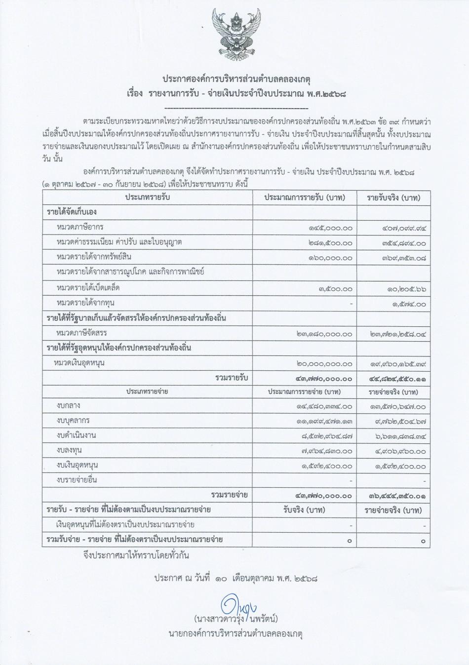 ประกาศ เรื่อง รายงานการรับ-การจ่าย ประจำปีงบประมาณ พ.ศ.2568[16 ตุลาคม 2568]