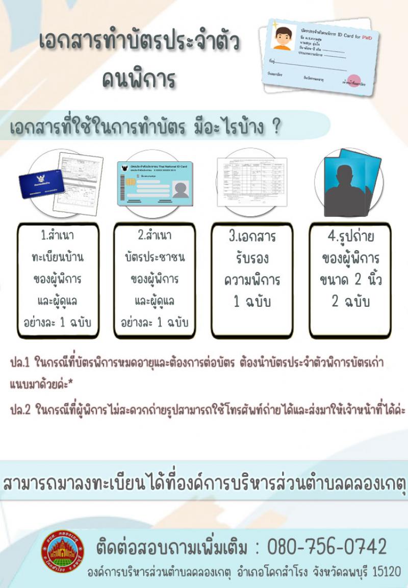 เอกสารที่ใช้ในการขึ้นทะเบียนรับเบี้ยและทำบัตรผู้พิการ