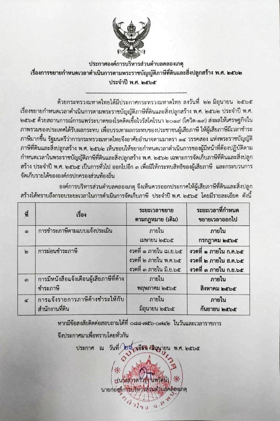 เรื่องการขยายกำหนดเวลาดำเนินการตามพระราชบัญญัติภาษีที่ดินและสิ่งปลูกสร้าง พ.ศ. ๒๕๖๒