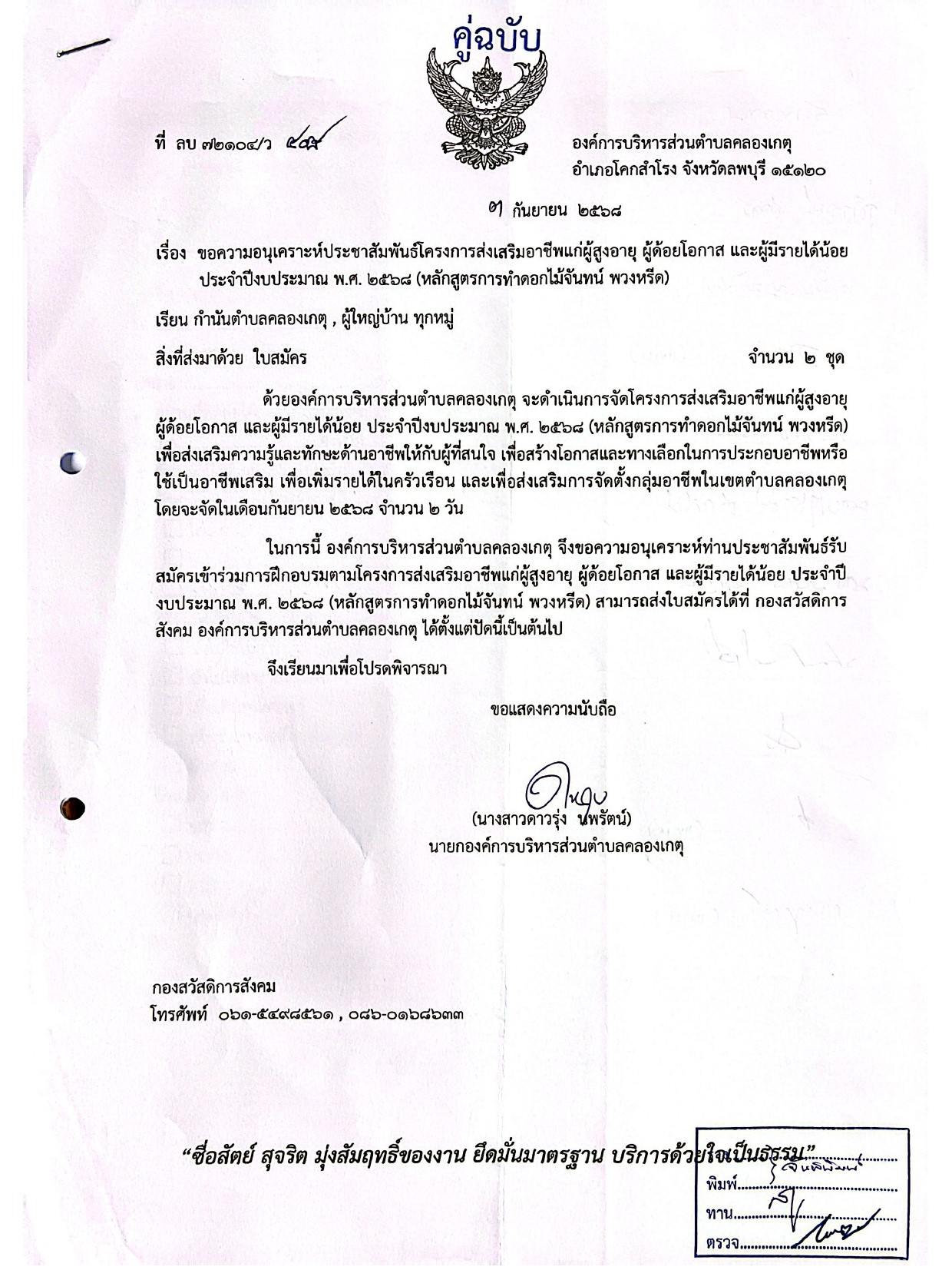 ประชาสัมพันธ์โครงการส่งเสริมอาชีพแก่ผ้สูงอายุ ผู้ด้อยโอกาส และผู้มีรายได้น้อย ประจำปีงบประมาณ พ.ศ. 2568 (หลักสูตรการทำดอกไม้จันทน์ พวงหรีด)